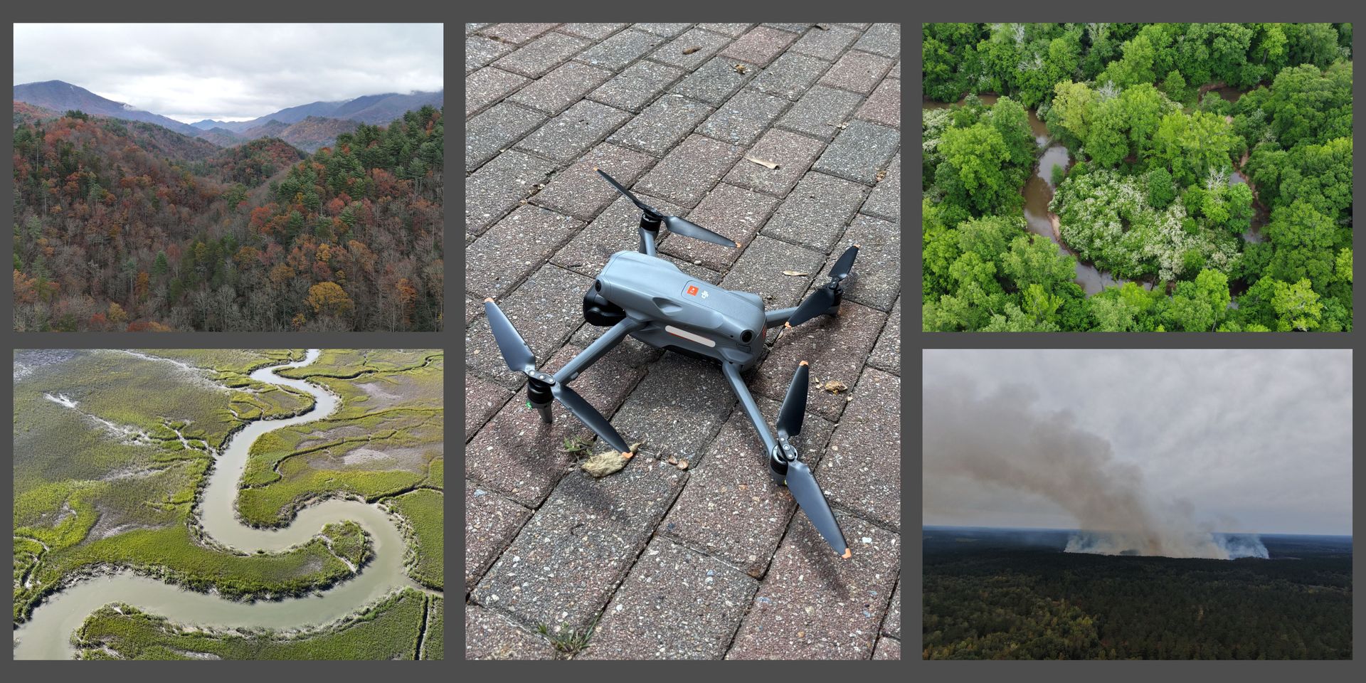 certified drone pilots on staff fly the drones to improve our monitoring of properties that are large (2,000+ acres), inundated with water, or have rugged topography and significant elevation changes that can be time-consuming to hike. We can help triage and assess storm damage, providing landowners with “before” and “after” pictures of widespread storm damage and bolstering their claim to emergency relief, an unfortunate reality that played out for many in September 2024 after Hurricane Helene.